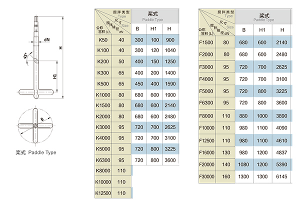 搪玻璃槳式攪拌器:搪玻璃槳式攪拌器分為平槳和斜槳兩種型式。每種型式又分一擋槳葉和兩檔槳葉。每擋攪拌槳葉數(shù)為4,屬于徑流式攪拌,主要功能是剪切,標準的搪玻璃槳式搪玻璃攪拌器的轉(zhuǎn)速不超過125r/min,總體上屬于慢速搪玻璃攪拌。斜槳的槳式攪拌器除了對物料有剪切作用之外,還有一定的軸向液體循環(huán)的功能。