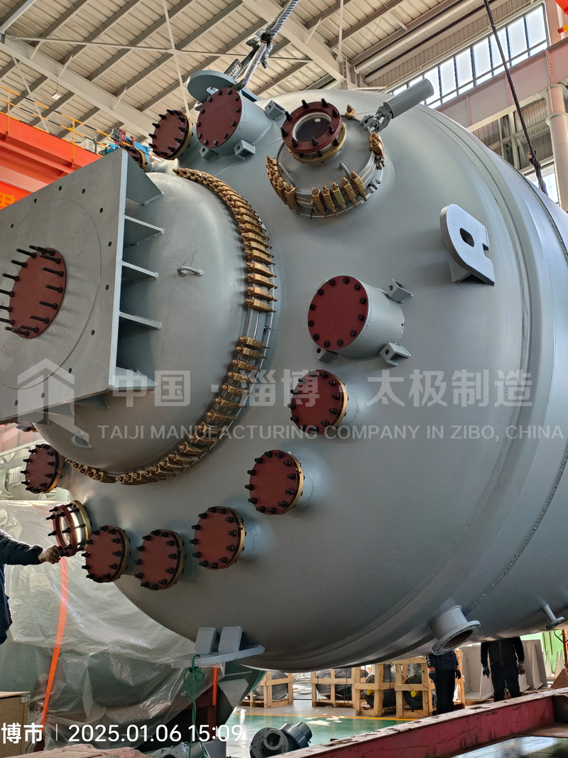 1 月 8 日,太極公司 8 萬(wàn)升閉式搪玻璃反應(yīng)釜完成整裝發(fā)貨。設(shè)備融合 36 項(xiàng)專利技術(shù),采用全封閉承壓設(shè)計(jì),搭配自研高性能瓷釉,耐酸堿腐蝕性能達(dá)國(guó)際先進(jìn)水平。此次發(fā)貨不僅創(chuàng)下企業(yè)大型設(shè)備交付新紀(jì)錄,更彰顯其在高端搪玻璃裝備領(lǐng)域的制造實(shí)力。