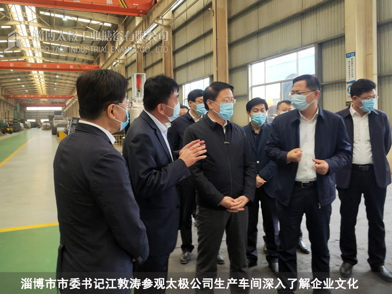 5月10日下午,市委書記江敦濤、市長馬曉磊、市委主要領導及縣委書記、縣長等領導,一行十幾人來到太極公司參觀考察。當了解到太極是目前國內最大的搪玻璃設備生產企業,并且在全國搪玻璃設備同行業中連續十幾年生產、銷售、納稅穩居絕對優勢時,領導們臉上都露出了滿意的笑容。